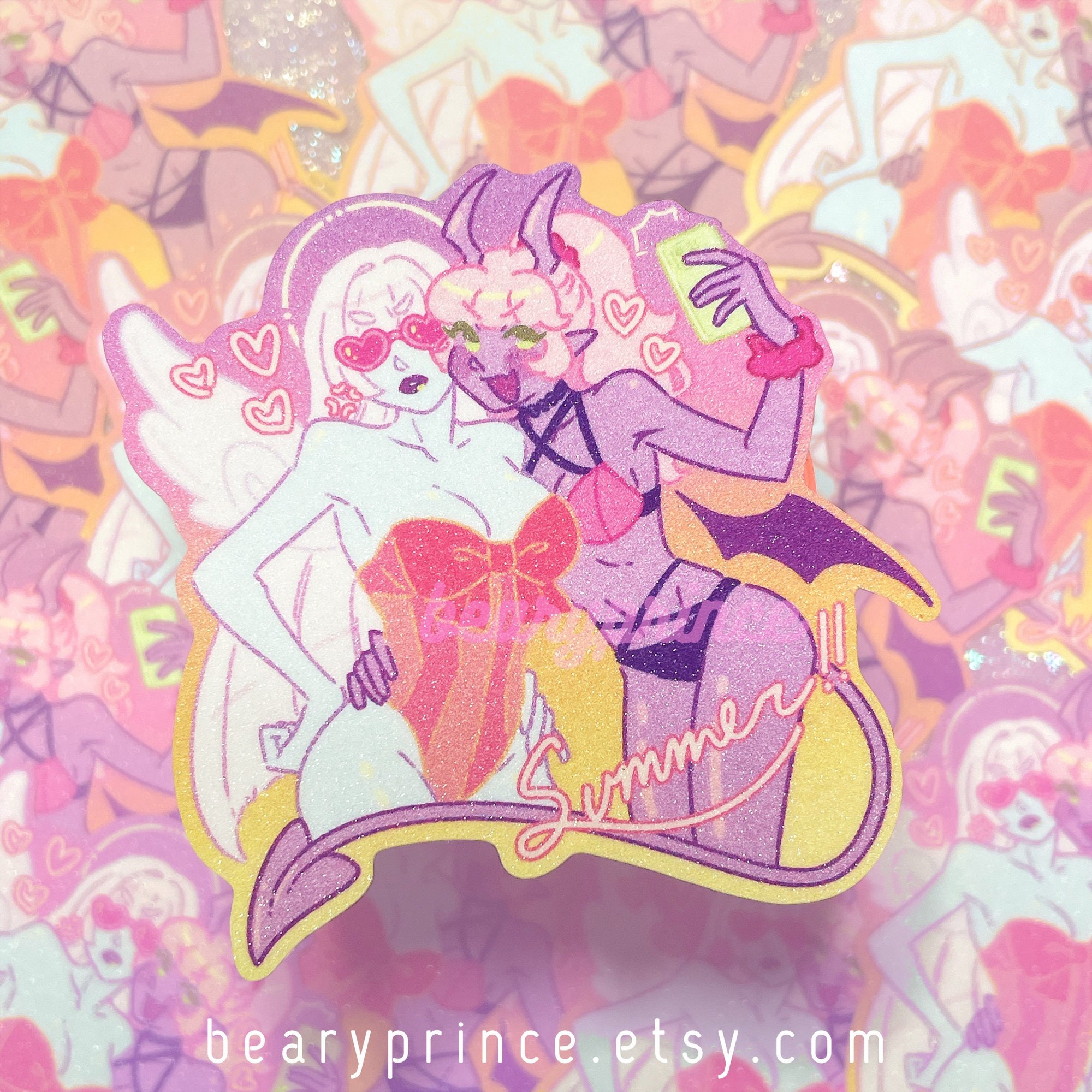 Approx. 3 inch glitter diecut stickers featuring my ocs Paris and Lillie