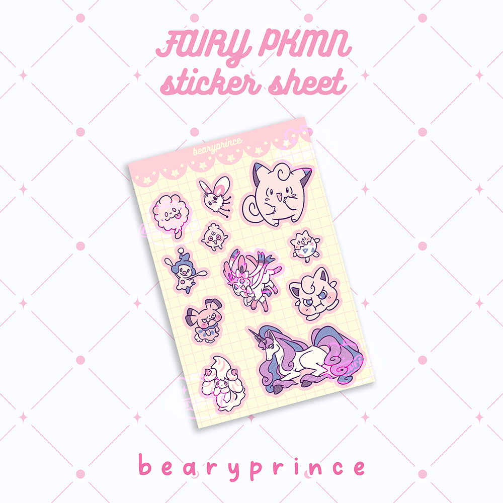Approximately 4x6" sticker sheet featuring assorted fairy PKMN